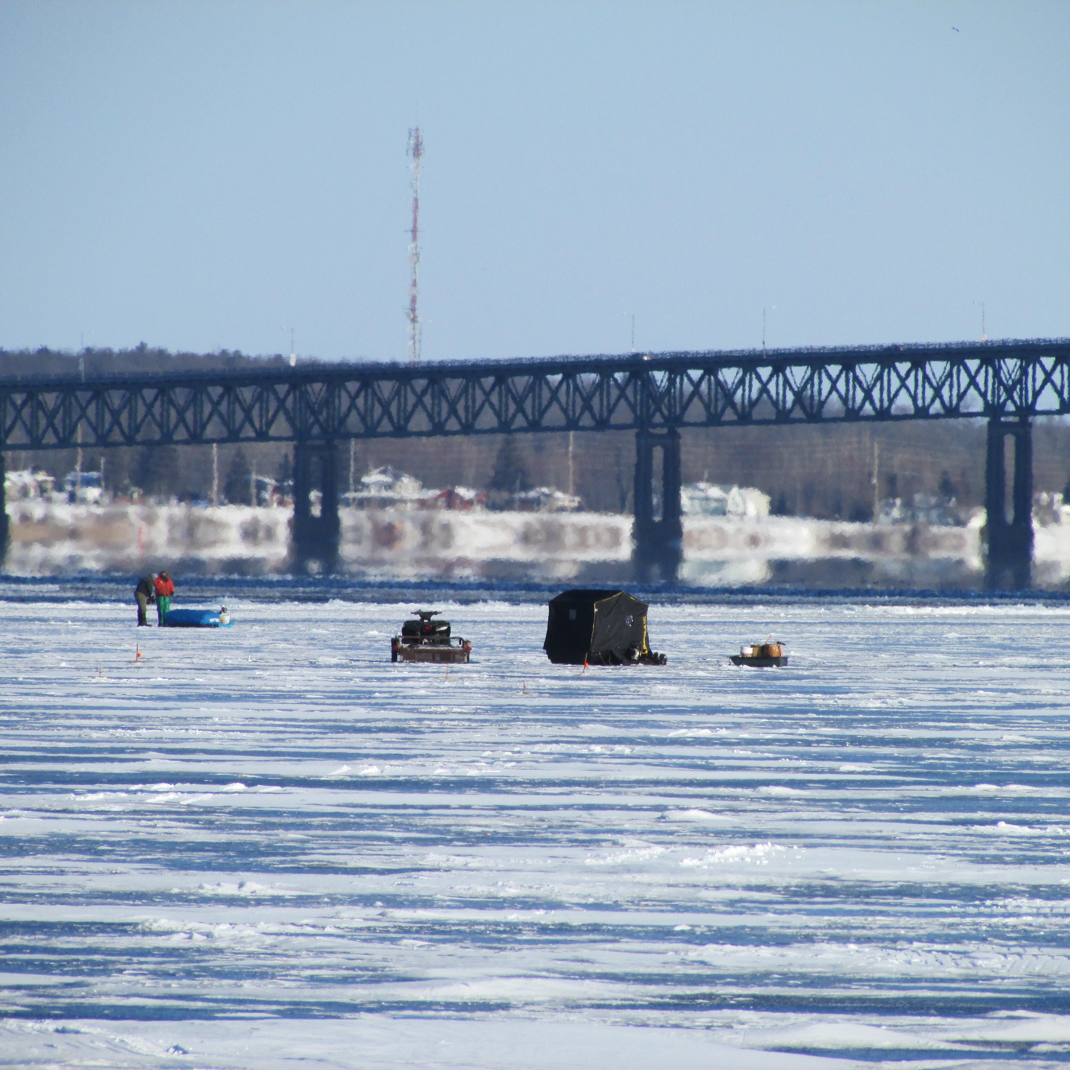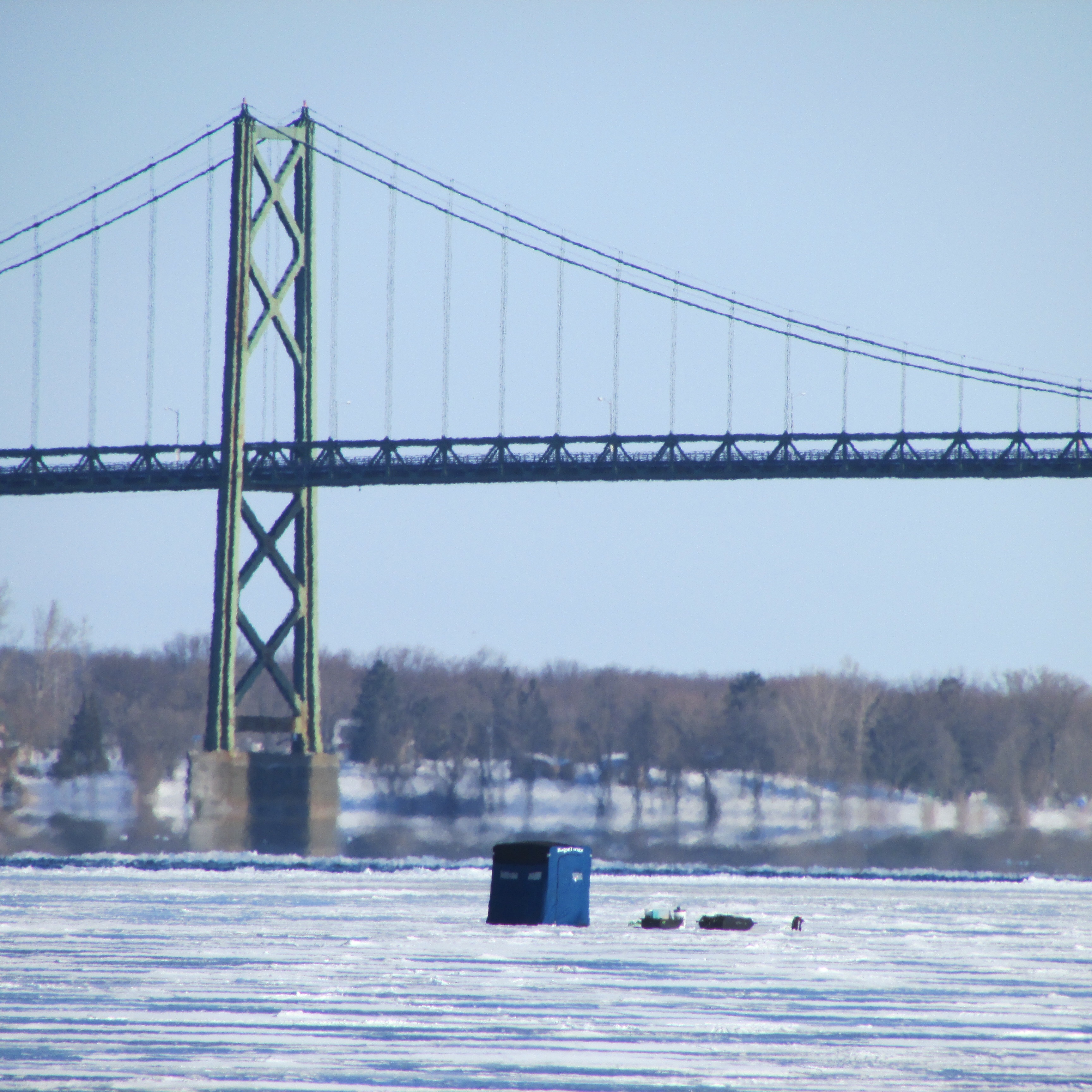 The residents of our community are passionate about ice fishing. An ice shanty (also called an ice shack, ice house, fishing shanty, fish house, fish coop, bobhouse, ice hut, or darkhouse) is a portable shed placed on the frozen river to provide shelter during ice fishing. It’s still early in the season, but by mid-February we will see many more shacks set up along the river.