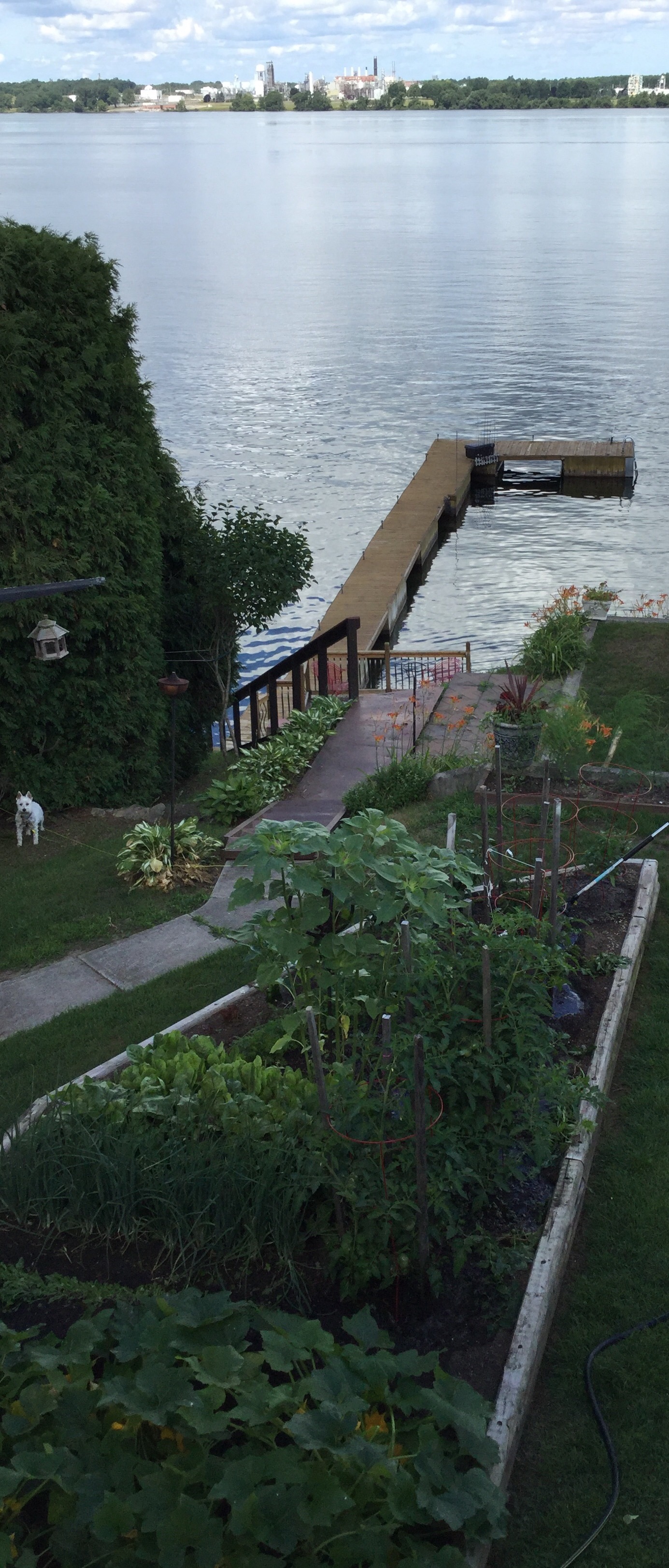 The first harvest is upon us. We’ve already sampled our first summer squashes, cherry tomatoes and salad greens. Heidi, our miniature schnauzer, does her best to keep the rabbits away!